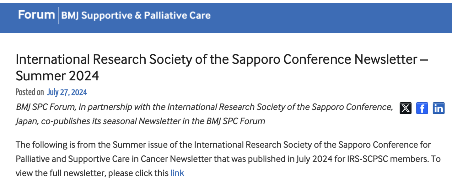 July 27,2024. The Summer issue of the SCPSC Newsletter was published on the BMJSPCare Forum.